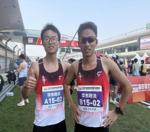 华东政法大学的宋振翔(右)带着“超过西政”的目标首次站上赛道。