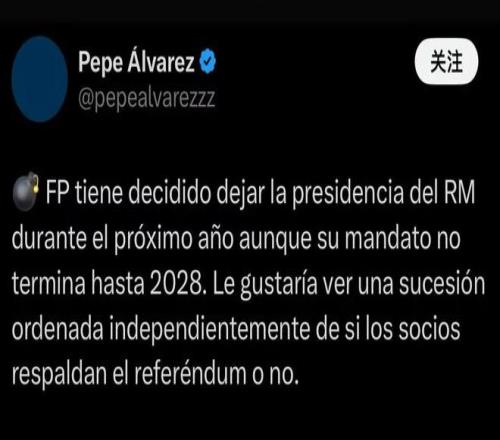 就在刚刚,根据西班牙媒体塞尔电台带来的最新消息。皇马俱乐部即将迎来一场内部的巨大变迁,球队将在明夏采取多项措施。毫不夸张的讲,这是皇马一个时代终结的信号。之所以这样说,是因为球队主席弗洛伦蒂诺已经正式作出决定,他将在明年夏天卸任皇马主席一职。