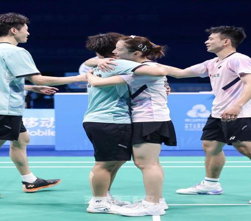 另一张照片,是黄东萍、欧烜屹与郑思维、黄雅琼的合影。他们联手奉献过无数场混双赛场的“神仙对决”,他们写就着国羽混双历史的辉煌成就。